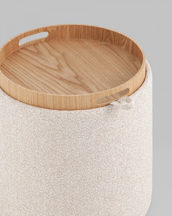 Мягкий пуф с ящиком станет незаменимым украшением интерьера. Он не только удобный, но и функциональный. Благодаря двухсторонней крышке, пуф можно трансформировать в журнальный столик. Столешница выполнена из светлого дерева с бортиками по краям и вырезными ручками для удобства, и безопасности при использовании. Крышка пуфика полностью съемная и при необходимости её можно использовать как поднос. Полезное дополнение — ящик для хранения различных мелочей, внутри обит тканью. Компактный и вместительный, такой пуфик наполнит пространство особым уютом и теплом. Подойдет для любого интерьера — как в классическом стиле, так и в современном. Мягкая обивка выполнена из рогожки — высокопрочный, устойчивый к истиранию и простой в уходе материал, отлично сочетается со вставками из дерева. Прочный каркас из фанеры не утяжеляет изделие и выдерживает нагрузку до 150 кг. Небольшие подпятники в основании пуфа защищают напольные покрытия от царапин и предотвращают скольжение.