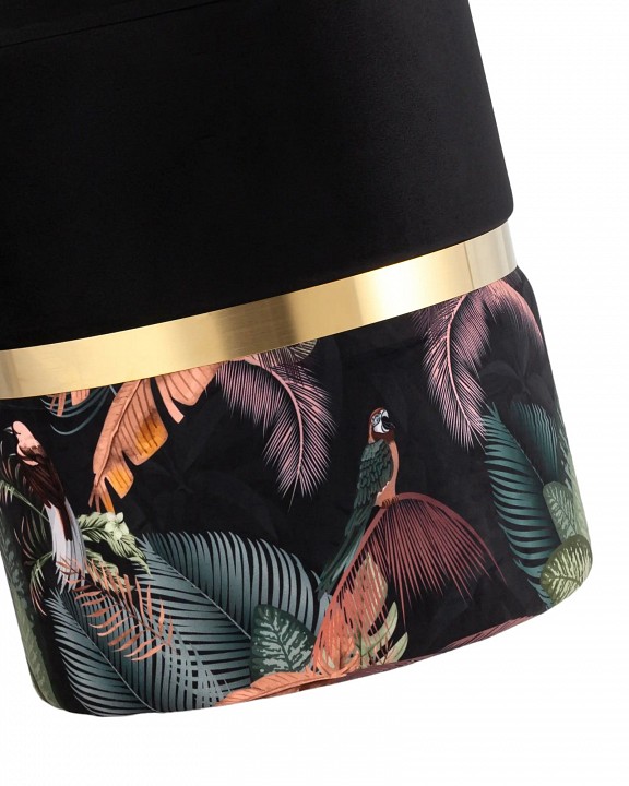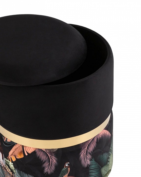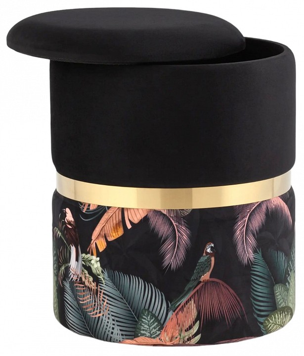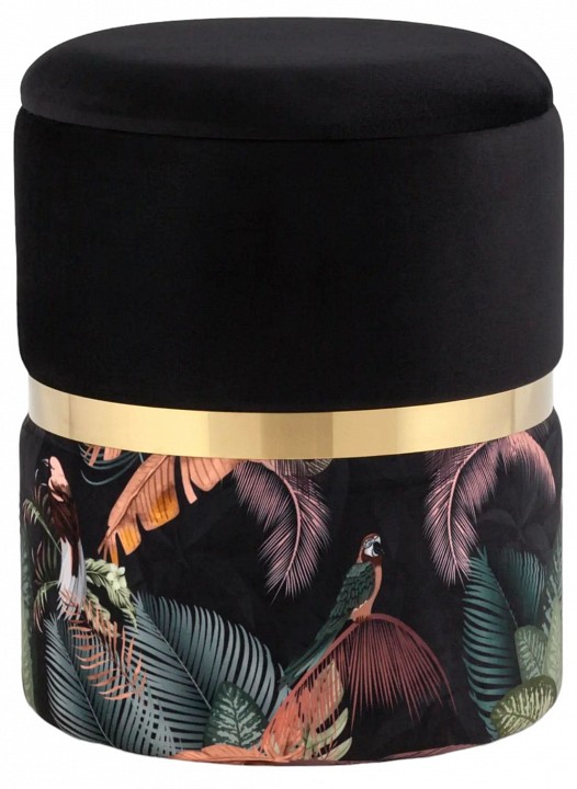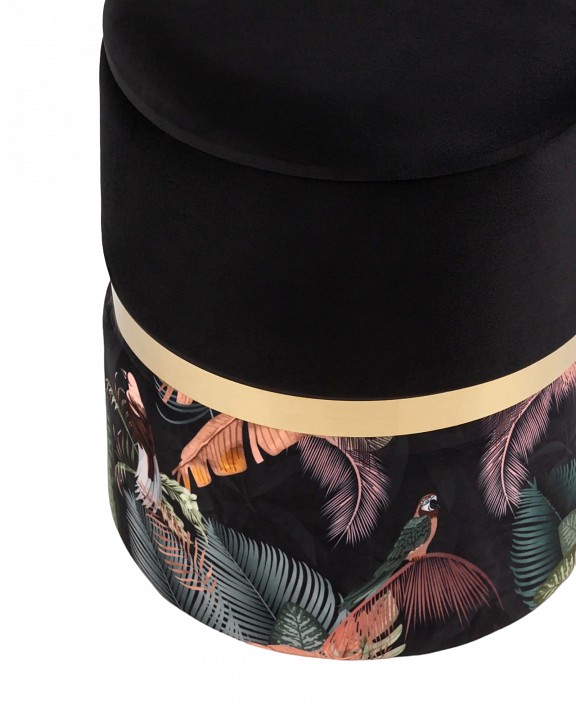 Лаконичная модель пуфа в мягкой обивке прекрасно впишется в современные интерьеры. Обивка выполнена из велюра и украшена металлическим ободком в золотом цвете. Под сиденьем имеется ящик для хранения различных мелочей. В основании предусмотрены специальные подпятники, которые делают пуф более устойчивым и предотвращают скольжение.