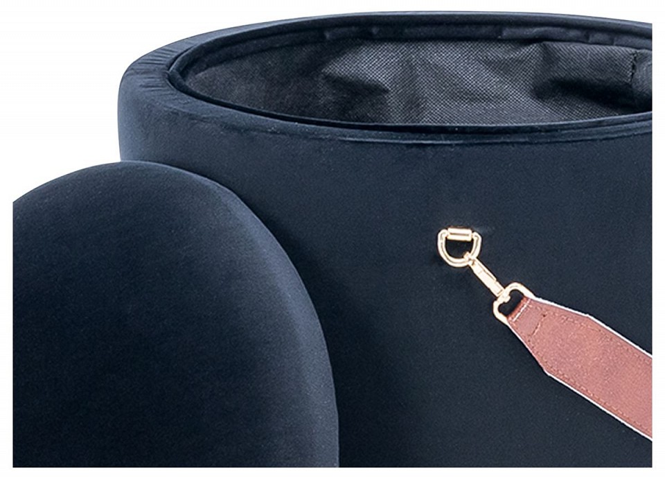Дополнительное описание: Пуф для гостиной, легкий и прочный с большим ящиком для мелочей, этот модный пуф влюбит Вас в себя с первого взгляда. Украшен пуф ручкой из коричневой кожи, с золотистым креплением карабинного типа.