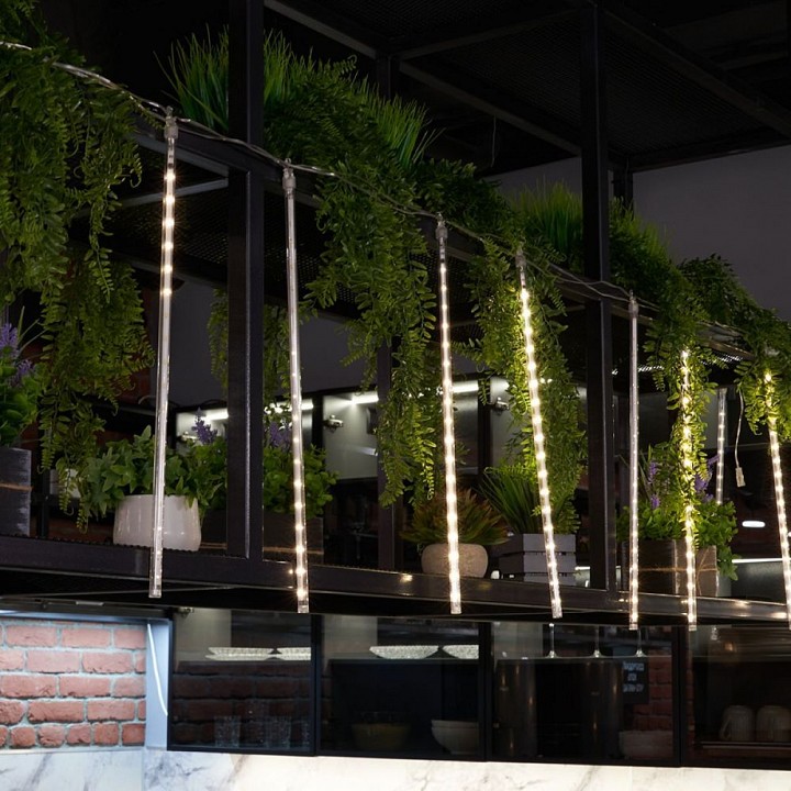 Дополнительные параметры: гирлянда Сосульки, 360LED, динамичный, 4.5*0.5м+3м прозрачный шнур, расстояние между светодиодами 50см, от сети, последовательное подключение до 3 гирлянд