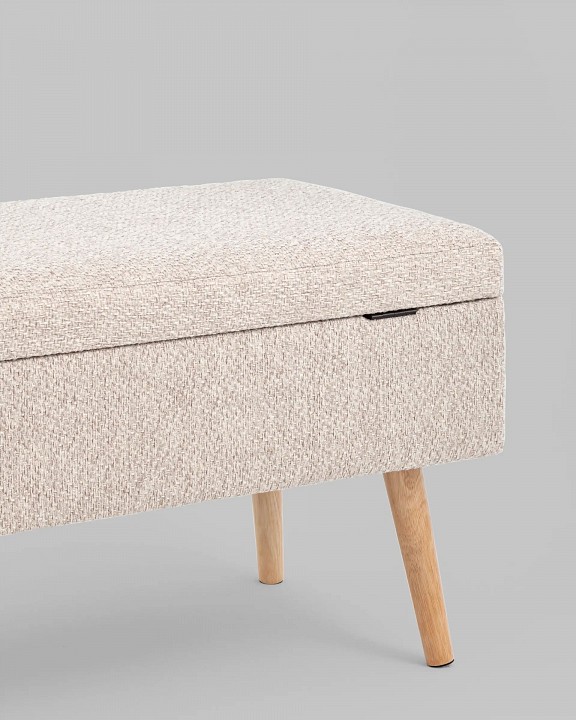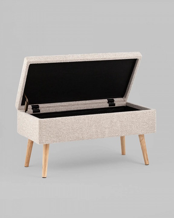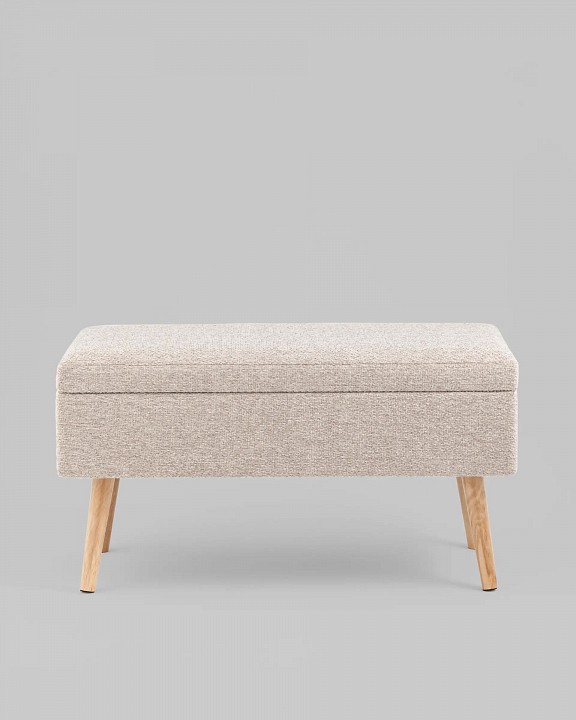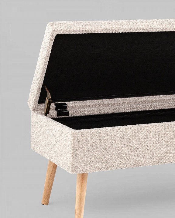 Функциональная банкетка с ящиком для хранения станет прекрасным дополнением любого интерьера. Этот стильный предмет мебели сочетает в себе комфорт и практичность. Основание изготовлено из массива дерева, поэтому легко выдерживает нагрузку до 150 кг. Деревянные ножки оснащены накладками, которые защитят пол от царапин и лишнего шума при передвижении скамейки-пуфа. В качестве обивки мягкого сиденья использован качественный и долговечный материал рогожка — не подвержен деформации, не растягивается даже при интенсивном использовании.