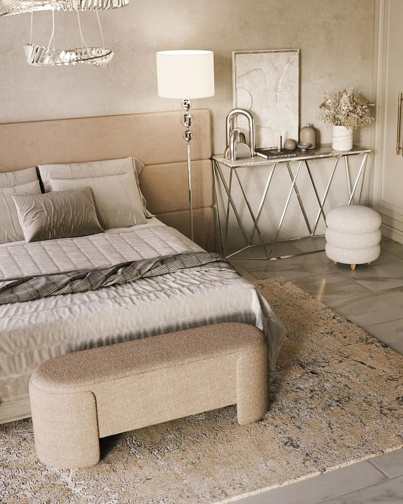Изящная банкетка с мягким сиденьем станет прекрасным дополнением интерьера спальни, зала или прихожей. Обивка сиденья выполнена из букле — приятного на ощупь, износостойкого и простого в уходе материала. На ножках предусмотрены мягкие накладки, которые предотвращают повреждения напольного покрытия.