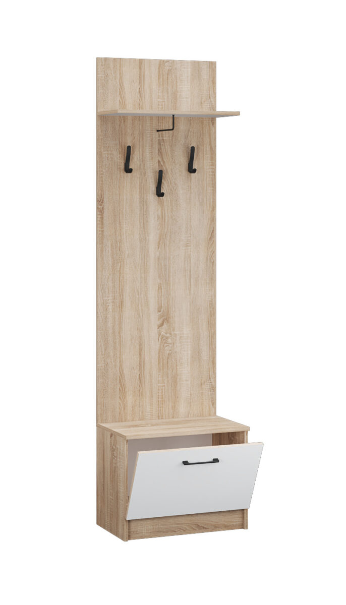 Тумба с вешалкой Денвер, полкой-антресолью, сиденьем и отсеком для хранения обуви.