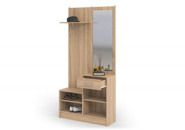 Прихожая «Дебора» прекрасно подойдет для небольшого коридора, потому что общая ширина составляет всего 900 мм.