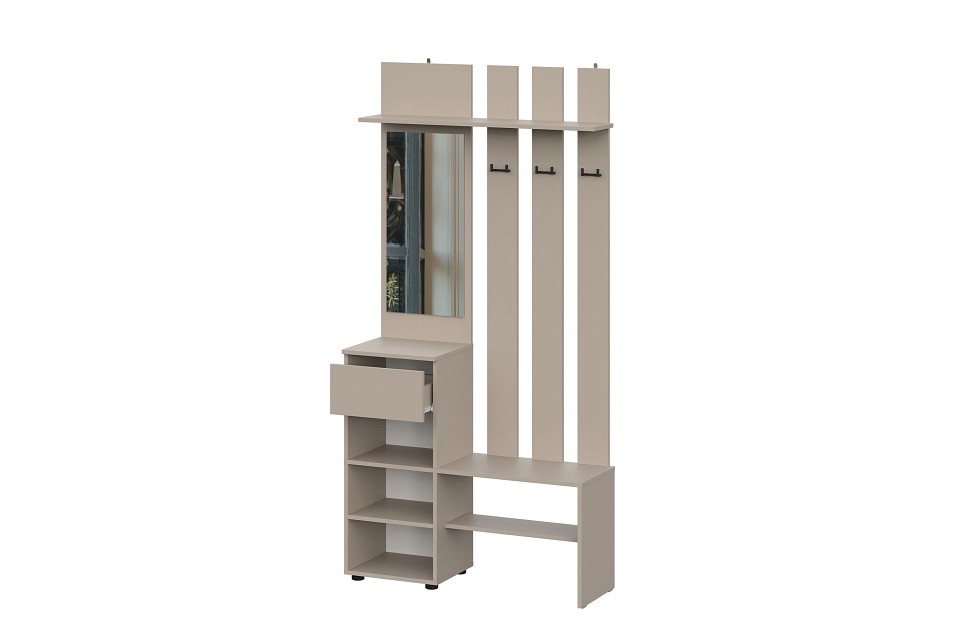 Вешалка Денвер в цвете меланж поможет организовать систему хранения гардероба в современном интерьере. Для вашего удобства предусмотрены двухрожковые крючки для повседневной верхней одежды, широкая верхняя полка для головных уборов и шарфов, ниша для обуви, а также выдвижной ящик. За распашным фасадом находятся небольшие полки. Зеркало позволит оценить внешний вид перед выходом из дома. Вешалка легко крепится к стене, сборка универсальная.
