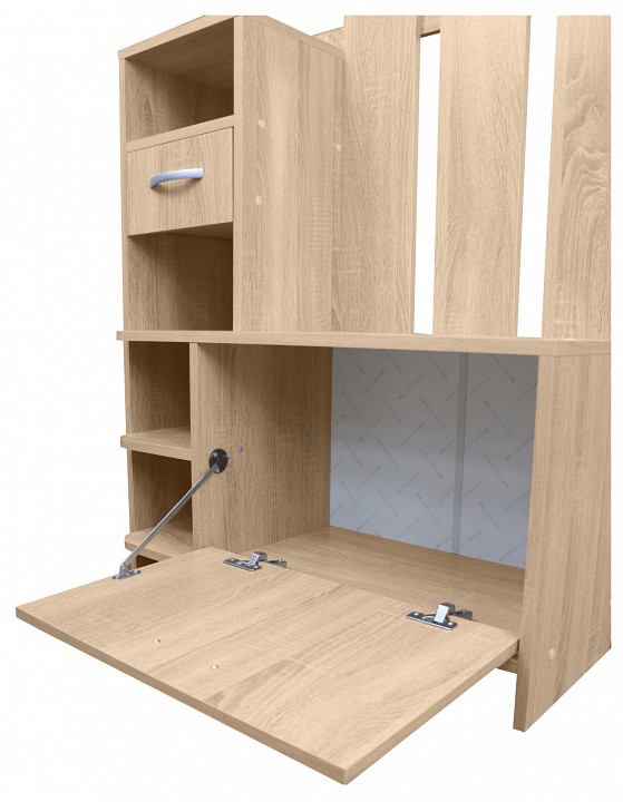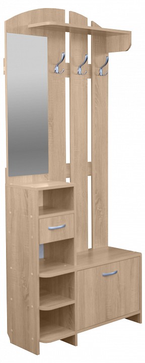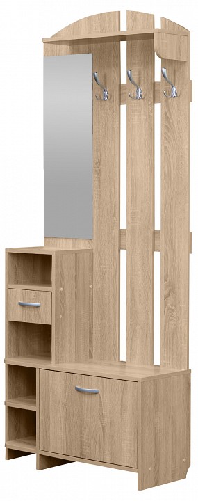 Компоненты, входящие в комплект: вешалка:, 1 полка, 3 крючка; зеркало; стеллаж:, 1 ящик, 2 полки; тумба для обуви:, 1 дверца, 1 полка
