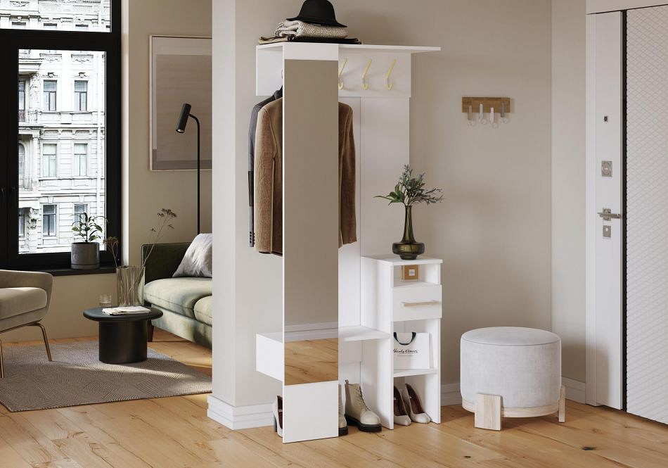 Компоненты, входящие в комплект: 1 зеркало, 1 ящик, 3 полки