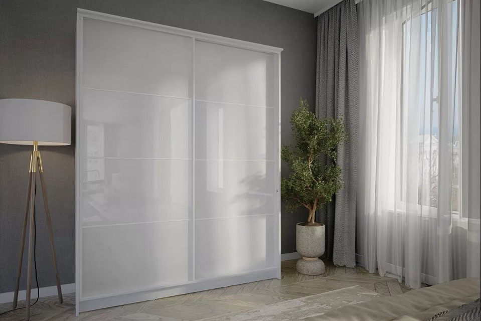 Дополнительные параметры: профиля белые, фасады выполнены из белого ЛДСП с многослойным покрытием лака, полки и штанга для одежды в комплекте, глубина указана по козырьку, глубина шкафа по основанию — 607 мм