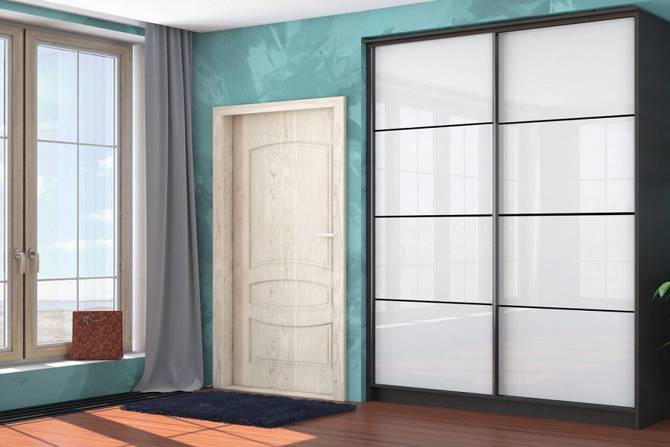 Компоненты, входящие в комплект: 1 штанга для вешалок, 2 дверцы, 7 полок