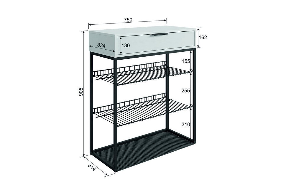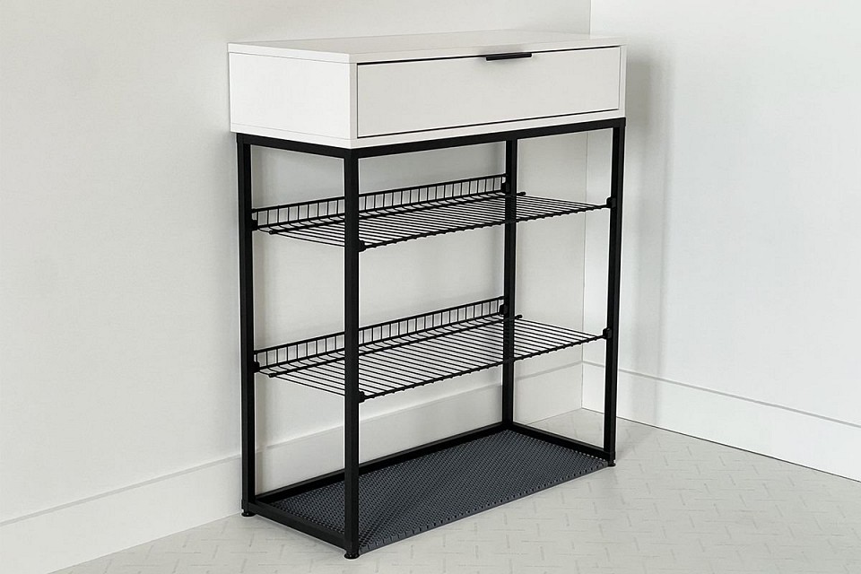 Обувница Краш: идеальное дополнение для современной прихожей. Обувница Краш прекрасно сочетает в себе стиль и функциональность. Её дизайн в стиле лофт идеально подходит для современных интерьеров. Выдвижной ящик с шариковыми направляющими обеспечивает бесшумное и плавное открывание, предоставляя удобный доступ к вашим аксессуарам и мелочам. Регулируемые опоры и специальный коврик обеспечивают дополнительный комфорт и защиту.