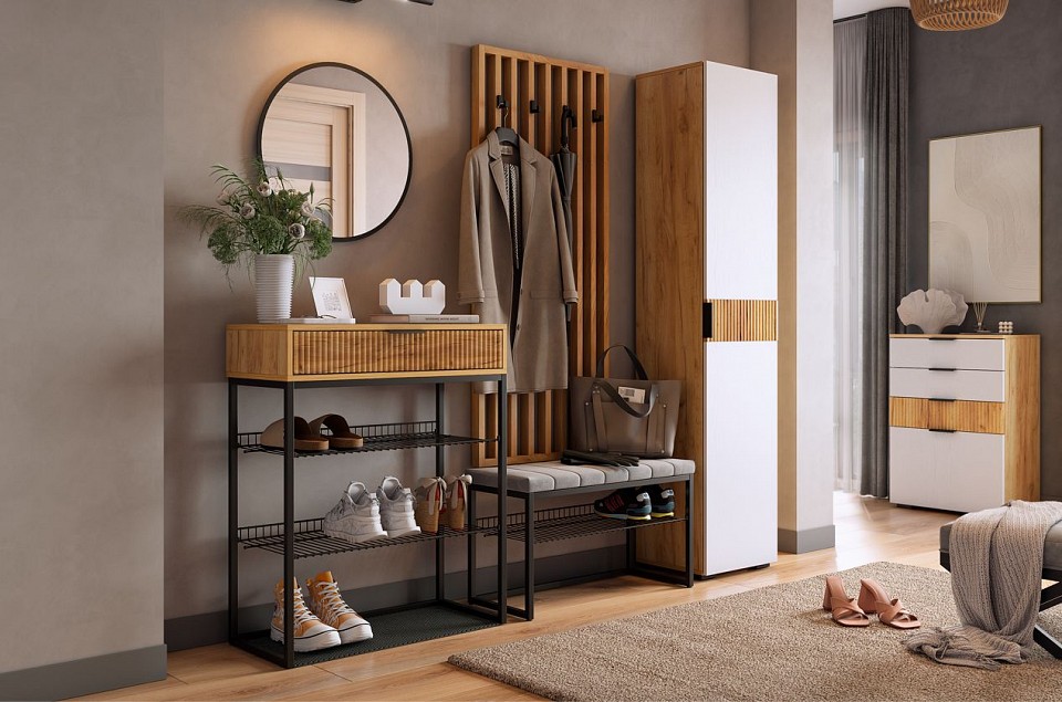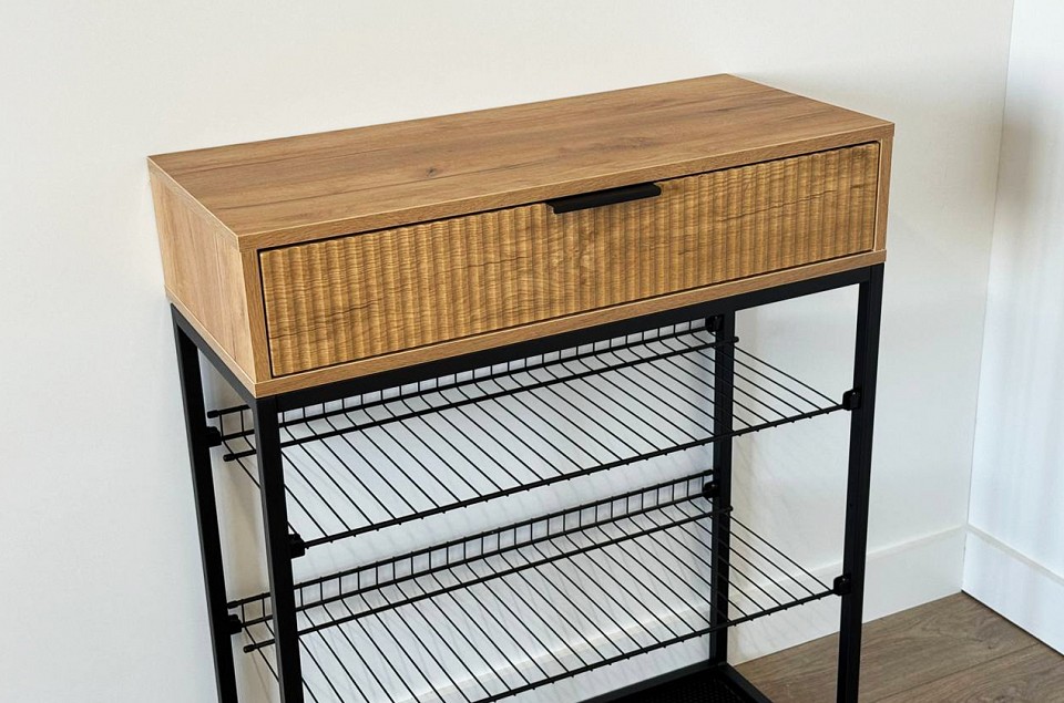 Дополнительные параметры: кромка ПВХ 19×1 мм, кромка ПВХ 19×0.4 мм полка сетчатая — 300х695 мм коврик Эва — 712х295 мм максимальная нагрузка на ящик — 15 кг направляющие — шариковые вместимость — до 9 пар обуви