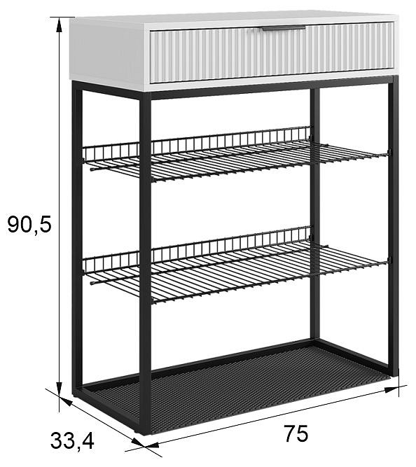 Дополнительные параметры: кромка ПВХ 19×1 мм, кромка ПВХ 19×0.4 мм полка сетчатая — 300х695 мм коврик Эва — 712х295 мм максимальная нагрузка на ящик — 15 кг направляющие — шариковые вместимость — до 9 пар обуви
