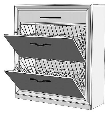 Компоненты, входящие в комплект: 1 ящик, 2 дверцы, 2 полки для обуви
