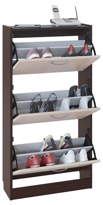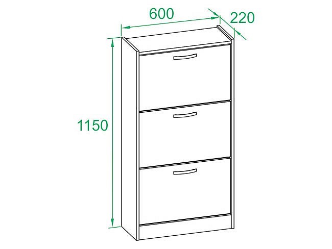 Лаконичная модель обувницы гармонично дополнит любой интерьер прихожей и позволит держать обувь в порядке и в быстром доступе. Модель оснащена тремя отделениями и рассчитана на восемь пар невысокой обуви на плоской подошве. Ручка выступает на 26 мм. Общая глубина с учетом ручек — 246 мм. Обратите внимание! Для устойчивости обувницу необходимо крепить к стене. Вся необходимая фурнитура входит в комплект. Рекомендуем сохранить инструкцию по сборке (паспорт изделия) до истечения гарантийного срока.