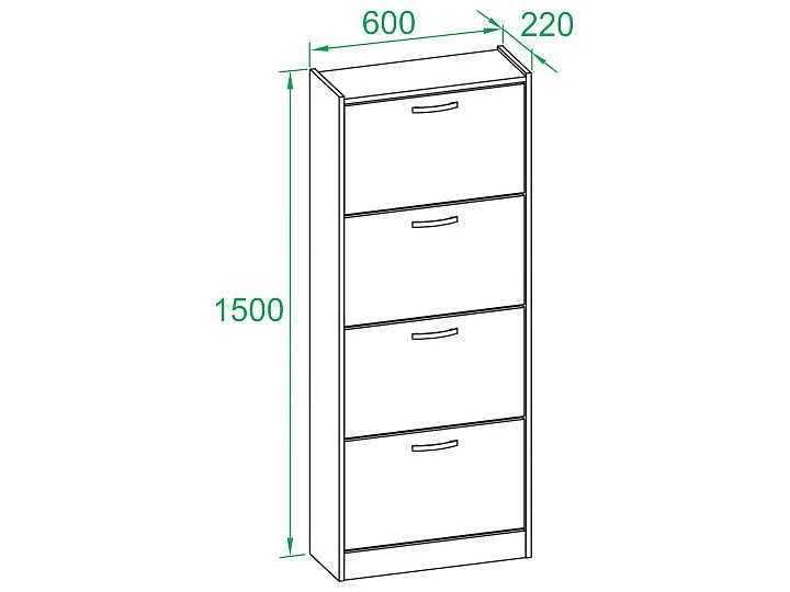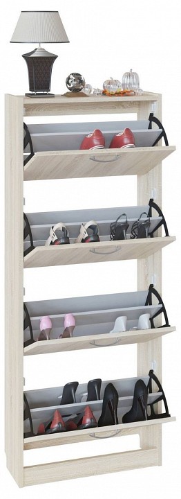Высокая и компактная тумба для обуви в классическом исполнении. Модель имеет четыре отделения по две полки в каждом и вмещает в себя примерно двенадцать пар невысокой обуви на плоской подошве. Удобно и практично. Благодаря маленькой глубине — всего 220 мм, обувница не будет занимать много места. Обратите внимание! Для устойчивости обувницу необходимо крепить к стене. Вся необходимая фурнитура входит в комплект. Рекомендуем сохранить инструкцию по сборке (паспорт изделия) до истечения гарантийного срока.