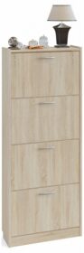 Высокая и компактная тумба для обуви в классическом исполнении. Модель имеет четыре отделения по две полки в каждом и вмещает в себя примерно двенадцать пар невысокой обуви на плоской подошве. Удобно и практично. Благодаря маленькой глубине — всего 220 мм, обувница не будет занимать много места. Обратите внимание! Для устойчивости обувницу необходимо крепить к стене. Вся необходимая фурнитура входит в комплект. Рекомендуем сохранить инструкцию по сборке (паспорт изделия) до истечения гарантийного срока.