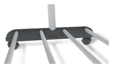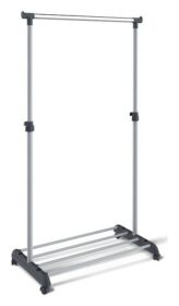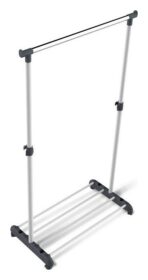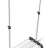 Штанга выполнена из хромированной трубы: диаметр/толщина: 28/0.8 мм, стойки — из металлической трубы: 32/0.8 мм, 28/0.8 мм. Размеры полки для обуви: 720х350 мм. Высота от пола до полки для обуви: 80 мм. Расстояние между трубками полки: 90 мм. Максимальная распределенная нагрузка на штангу 16 кг, на полку 20 кг.