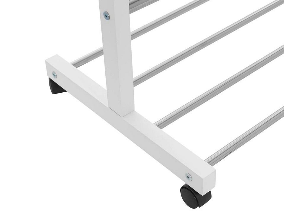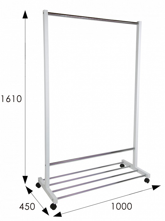 Мобильная гардеробная вешалка на 8-10 посетителей с подставкой для обуви или сумок. Эта вешалка идеально подходит для использования в небольших офисах для размещения верхней одежды сотрудников и посетителей. Вешалка предельно компактно упакована, это позволяет в том случае, когда необходимость в ней отпадает, легко разобрать и хранить ее без выделения дополнительной площади. Наличие колес позволяет легко перемещать вешалку. Модель экономичная и предельно практичная.