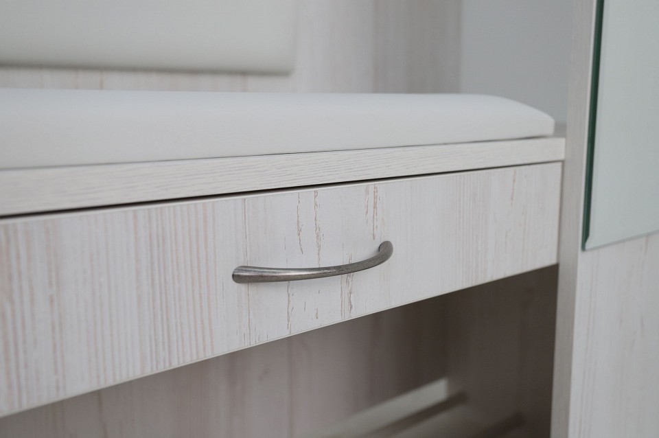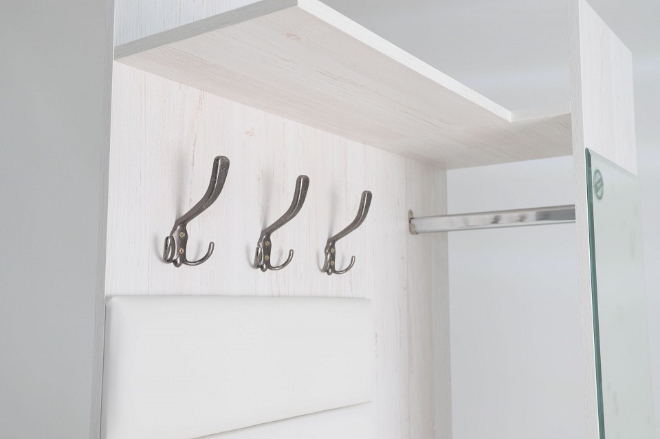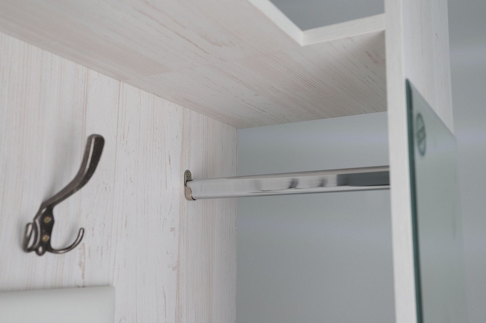 Компоненты, входящие в комплект: 1 дверца, 1 зеркало, 1 штанга для вешалок, 1 ящик, крючки