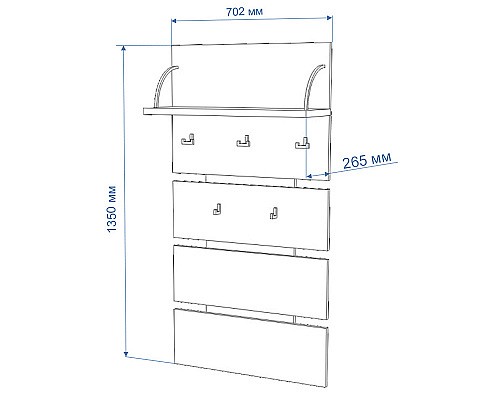 Компоненты, входящие в комплект: 1 полка, 5 крючков