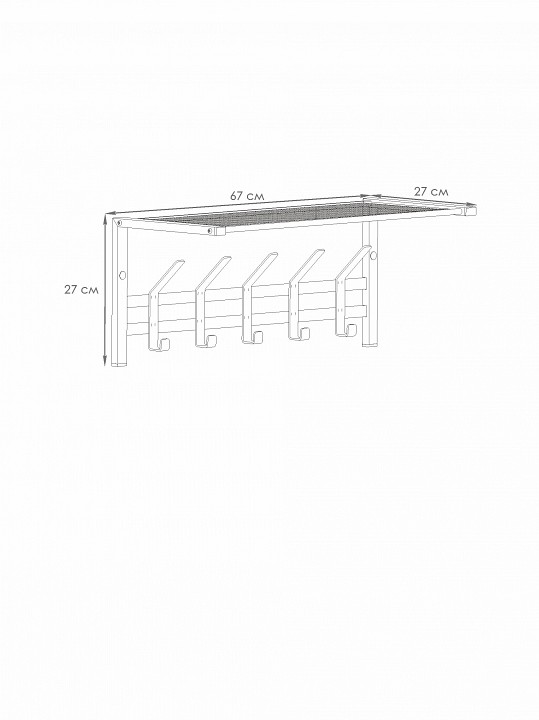 Компоненты, входящие в комплект: 1 полка, 5 крючков