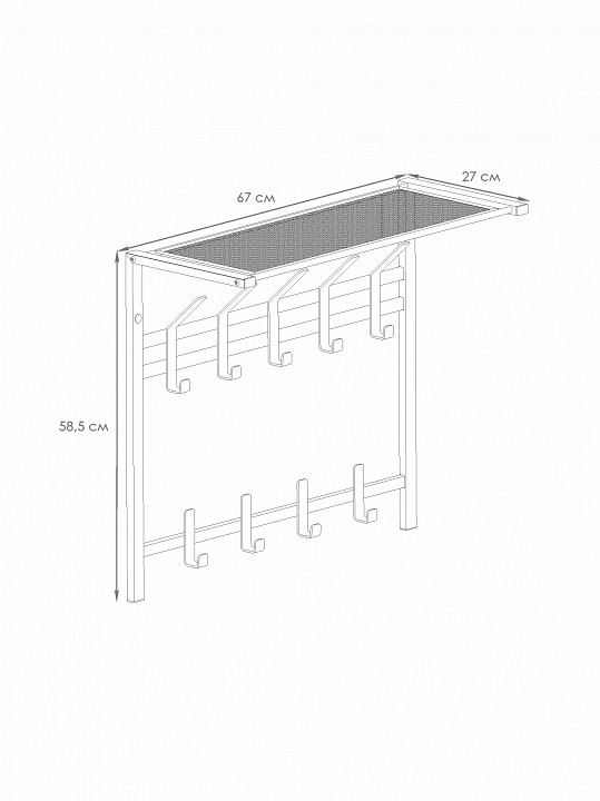 Компоненты, входящие в комплект: 1 полка, 9 крючков