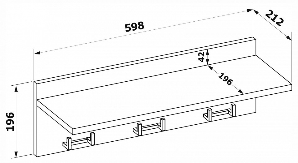 Компоненты, входящие в комплект: 1 полка, 3 крючка