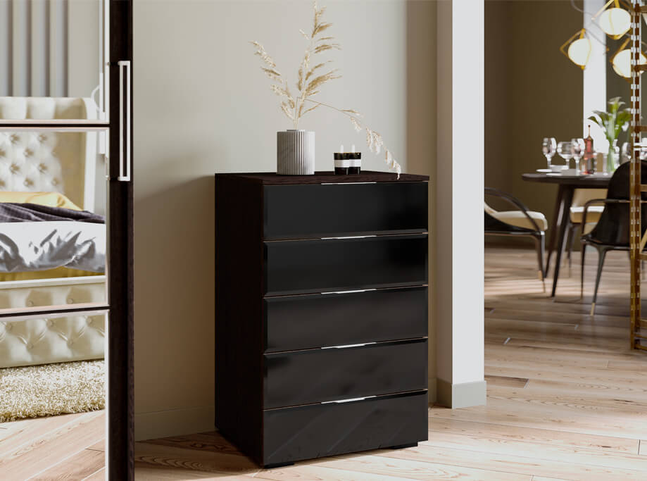Элегантный современный комод «Алекса» идеально впишется в любой интерьер и сможет служить не только удобной системой хранения для одежды, постельного белья, хозяйственных аксессуаров,