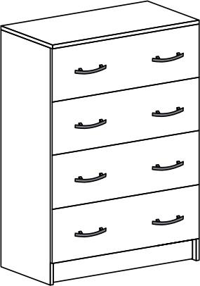 Внутреннее наполнение модели представлено 4-мя вместительными ящиками. Модель незаменима для хранения сложенной одежды, белья и постельных принадлежностей, а также других важных мелочей.