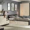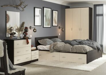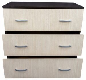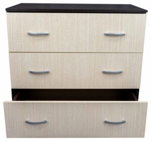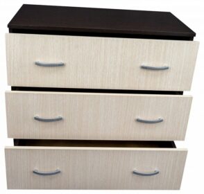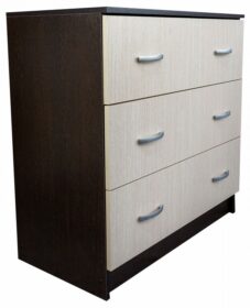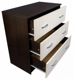 Комод подойдет даже для небольшой спальни, при этом три объемных ящика вместят белье и другие предметы гардероба.