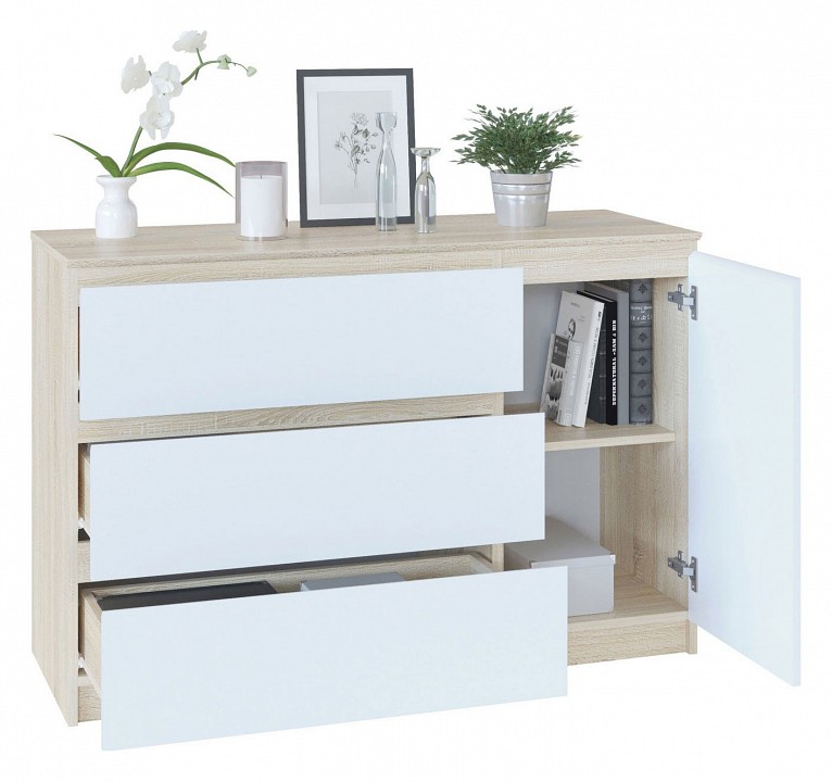 Компоненты, входящие в комплект: 1 дверца, 1 полка, 3 ящика