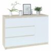 Широкий комод Т-3Р подойдет для меблировки самых разных комнат вашего дома. Отличительной особенностью модели является спил под 45° в верхней части фасадов, благодаря которому открывание ящиков осуществляется без ручек.