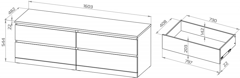 Размеры, мм: 1600x550x480
