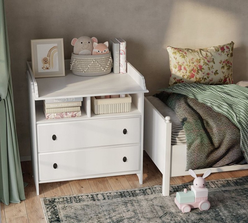 Дополнительные параметры: в комплекте с комодом 02 Вествик используется как пеленальный столик, крепится к стене, материал — массив сосны, цвет — белый