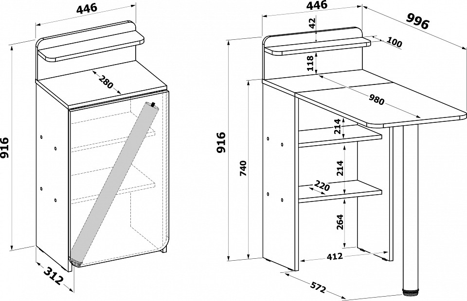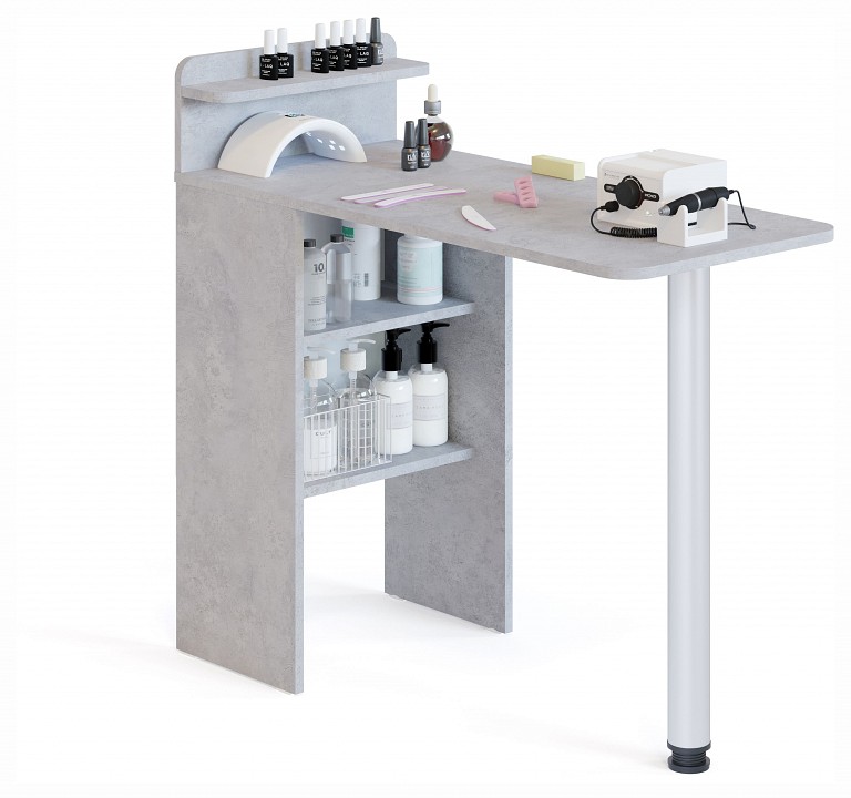 Многофункциональный раскладной стол СП-19. Это компактная модель с металлической хромированной опорой, регулируемой по высоте, и вместительными полками для хранения необходимых вещей и инструментов. Современный универсальный стол может использоваться как домашнее рабочее место с возможностью размещения компьютера и необходимых документов. Может применяться как маникюрный стол, используемый в домашних условиях или салонах красоты, а также как раскладной обеденный стол, идеально подходящий для малогабаритных квартир. Данная модель из рабочей трансформируется в узкую тумбу, внутри которой хранится опора. В собранном состоянии экономит пространство дома, поэтому хорошо впишется в любую, даже небольшую комнату. Материал: ЛДСП 16 мм с кромкой ПВХ 0.4 мм. Размер в разложенном виде (ВхШхГ): 916 х 996 х 446 мм. Максимальная нагрузка на столешницу: 20 кг. Максимальная нагрузка на полку: 5 кг. Ориентация сборки: только так, как представлено на изображении.