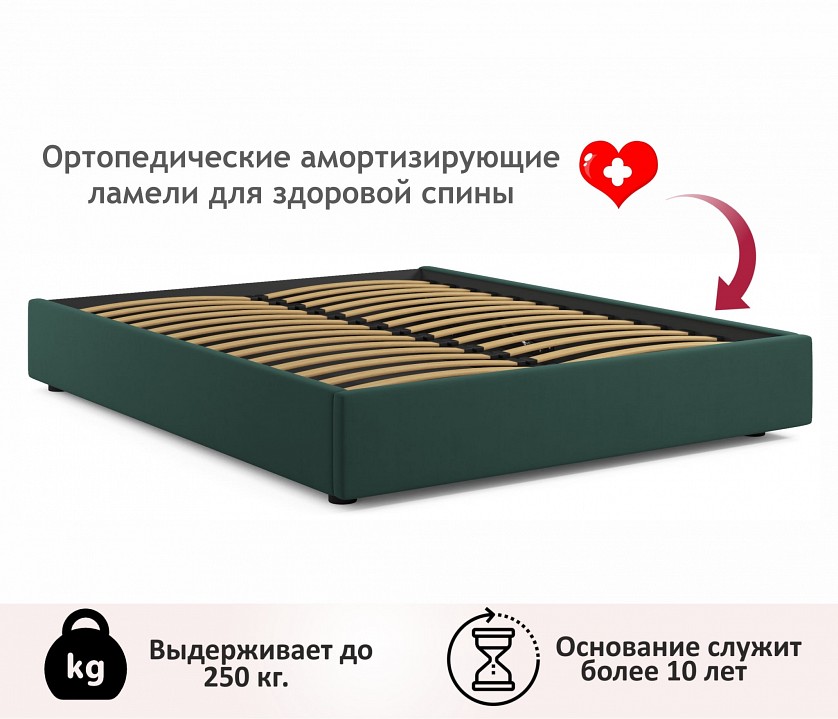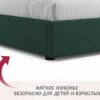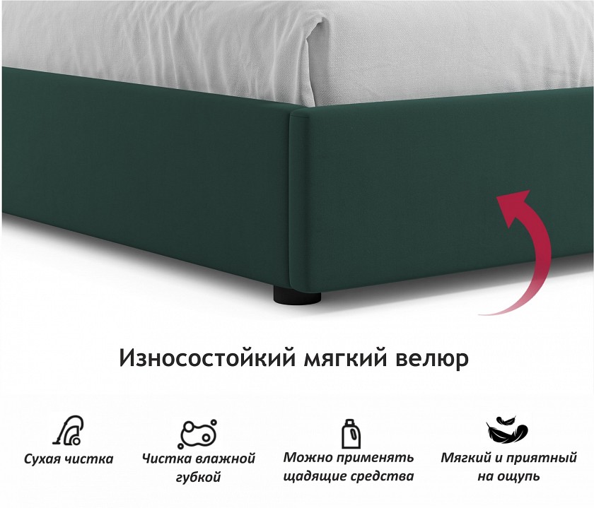 Весь периметр 2 спальной кровати выполнен из мебельной ткани – велюр.Ткань износостойкая, легко чистится от загрязнений. Кровать оборудована удобным подъемным механизмом. Подъемный механизм с гнутоклееными ортопедическими основаниями поднимает кровать под углом 45 градусов. Внизу — дополнительное место для хранения постельного белья и вещей не первой необходимости.Подкроватное пространство закрывается противопыльным матерчатым коробом из плотного спанбонда. Матерчатый короб фиксируется в подматрасном пространстве с помощью системы ленты-липучки ‘HOOK&LOOP’. Безопасное противоударное скругление в ножной спинке является весьма актуальным и взрослым, и детям. Нагрузка на одно спальное место 125 кг. Рекомендуемый вес матраса — не более 35 кг. Рекомендуемая высота матраса – не более 20 см.