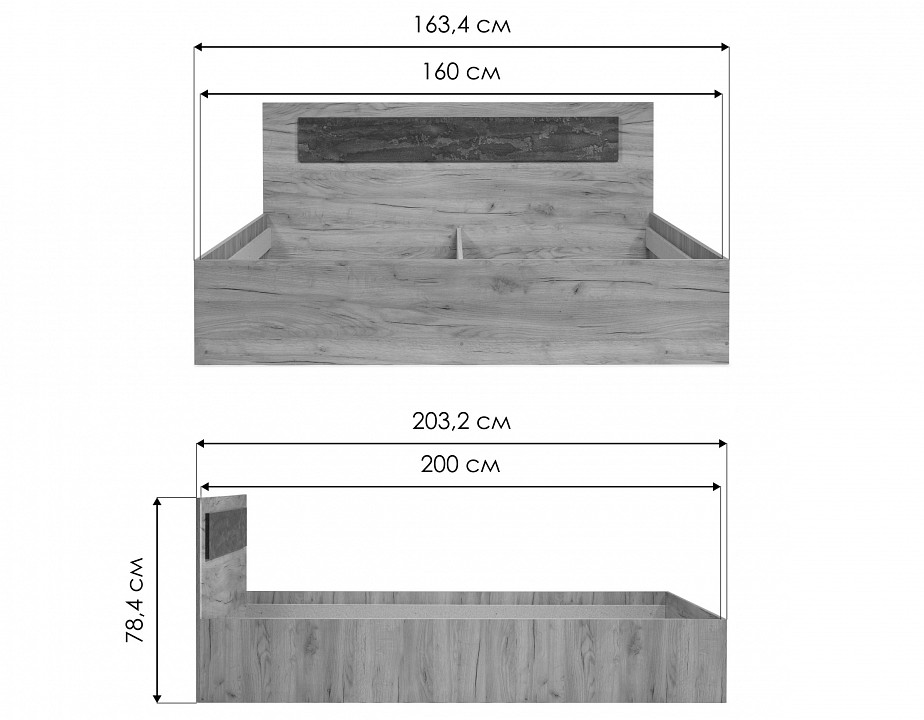 Дополнительные параметры: высота изголовья — 784 мм, высота изножья — 320 мм