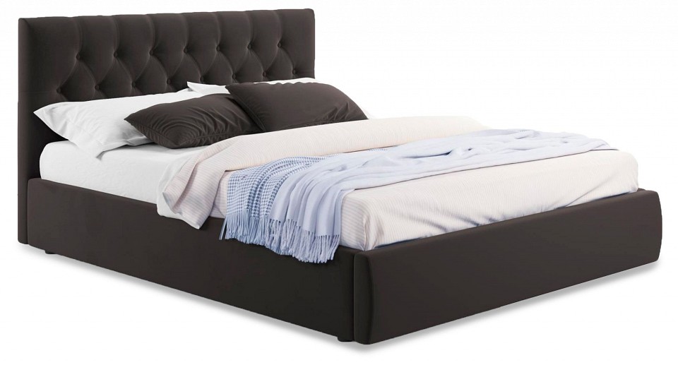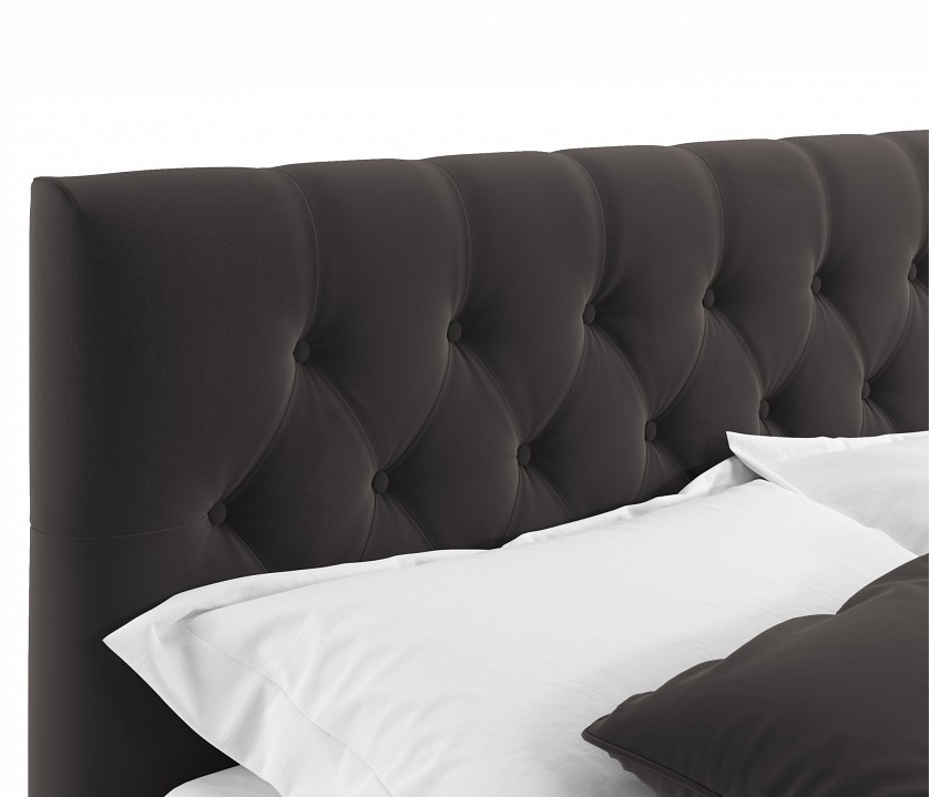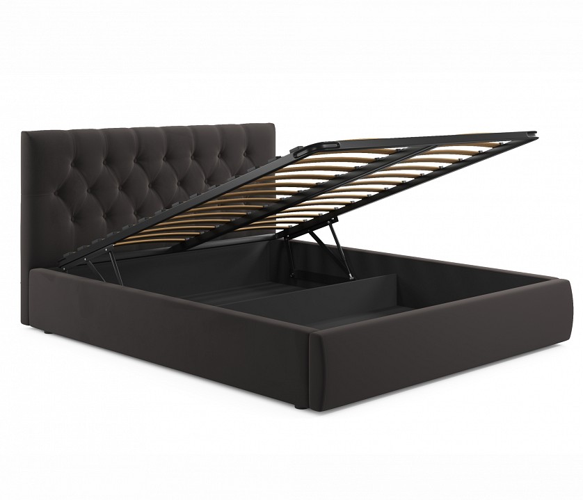 Интерьерная мягкая кровать Verona с подъемным механизмом – украшение любой спальни. Яркий акцент подъемной мягкой кровати из ткани Verona сделан на мягкое высокую рельефную спинку (мягкий подголовник) в стиле «Chester Laurence» с классической «каретной стяжкой», изготовленную вручную мастерами с 20-летним стажем. Каретная стяжка на сегодняшний день самый популярный способ обивки мягкой мебели. Мягкое изголовье с такой стяжкой более пухлое и объемное, а соответственно, более удобное не только для сна, но и для приятного времяпрепровождения (просмотра телепередачи, чтения книги, завтрака и даже, работы). Обивка изголовья и весь периметр мягкой кровати Verona выполнен из высокопрочного мебельного материала – велюр. Это уникальный материал, который получается за счет сплетения пяти волокон одновременно. Ткань износостойкая, легко чиститься от загрязнений, практичная, эластичная, устойчивая к ультрафиолету. Задняя стенка обшита спанбондом. Кровать Verona оборудована удобным подъемным механизмом. Подъемный механизм с кровати Verona гнутоклееными ортопедическими основаниями поднимает кровать под углом 45 градусов. Кровать с подъемным механизмом создает дополнительное место для хранения постельного белья и вещей не первой необходимости, экономит пространство в спальне. 10 летняя гарантия на металлическую рамку. Газлифты повышенной мощности позволяют поднимать и опускать ортопедическую рамку с матрасом без всяких усилий. Подкроватное пространство закрывается противопыльным матерчатым коробом из плотного спанбонда. Матерчатый короб фиксируется в подматрасном пространстве с помощью системы ленты-липучки ‘HOOK&LOOP’