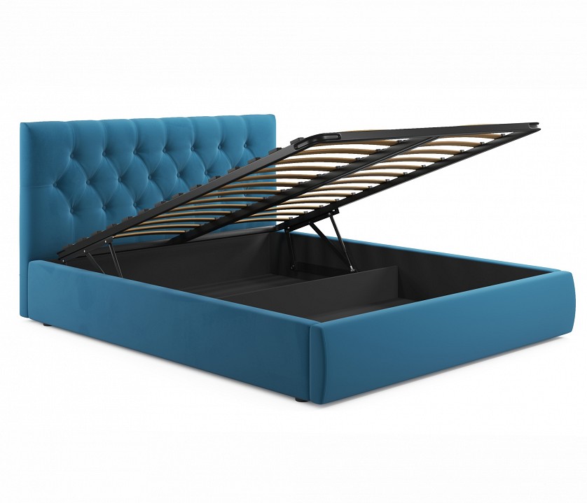 Интерьерная мягкая кровать Verona с подъемным механизмом – украшение любой спальни. Яркий акцент подъемной мягкой кровати из ткани Verona сделан на мягкое высокую рельефную спинку (мягкий подголовник) в стиле «Chester Laurence» с классической «каретной стяжкой», изготовленную вручную мастерами с 20-летним стажем. Каретная стяжка на сегодняшний день самый популярный способ обивки мягкой мебели. Мягкое изголовье с такой стяжкой более пухлое и объемное, а соответственно, более удобное не только для сна, но и для приятного времяпрепровождения (просмотра телепередачи, чтения книги, завтрака и даже, работы). Обивка изголовья и весь периметр мягкой кровати Verona выполнен из высокопрочного мебельного материала – велюр. Это уникальный материал, который получается за счет сплетения пяти волокон одновременно. Ткань износостойкая, легко чиститься от загрязнений, практичная, эластичная, устойчивая к ультрафиолету. Задняя стенка обшита спанбондом. Кровать Verona оборудована удобным подъемным механизмом. Подъемный механизм с кровати Verona гнутоклееными ортопедическими основаниями поднимает кровать под углом 45 градусов. Кровать с подъемным механизмом создает дополнительное место для хранения постельного белья и вещей не первой необходимости, экономит пространство в спальне. 10 летняя гарантия на металлическую рамку. Газлифты повышенной мощности позволяют поднимать и опускать ортопедическую рамку с матрасом без всяких усилий. Подкроватное пространство закрывается противопыльным матерчатым коробом из плотного спанбонда. Матерчатый короб фиксируется в подматрасном пространстве с помощью системы ленты-липучки ‘HOOK&LOOP’
