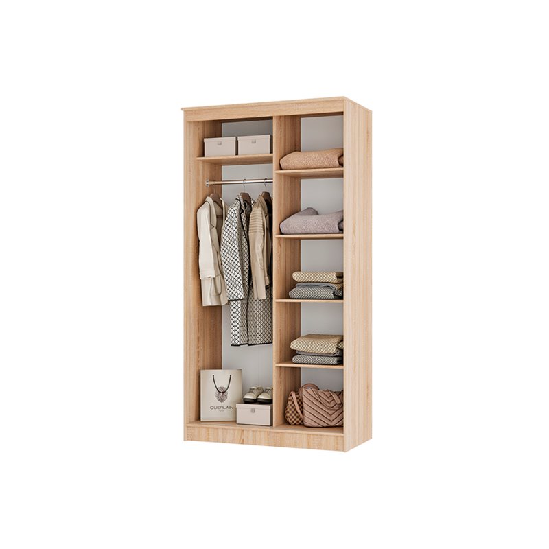 Шкаф-купе Сакура 1,14 содержит полки для белья и хромированную штангу для одежды.