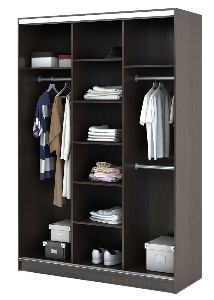 Вместительные полки и штанги для верхней одежды обеспечат порядок в вещах.