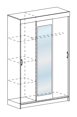 Шкаф имеет современный дизайн, вместительный и компактный с тремя раздвижными в стороны створками.