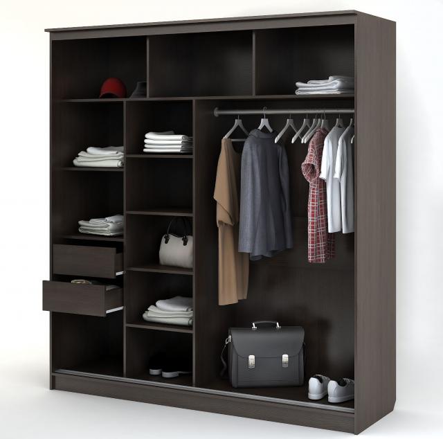 Внутреннее оборудование шкафа также порадует вас вместительностью и удобством при размещении в шкафу одежды, белья, головных уборов, обуви и прочих вещей, необходимых для жизни.