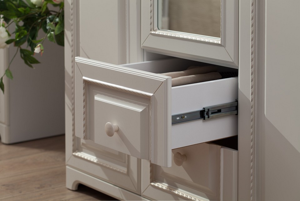 Нет ничего лучше, чем сочетание красоты и практичности, 3-створчатый шкаф «Белла» тому доказательство. Фасады шкафа выполнены в нежном оттенке джелато, дверцы украшены фрезеровкой, а ручки — декоративными кистями. Центральный отсек шкафа оснащен полками, а боковые – штангами для одежды. Выдвижные ящики прекрасно подойдут для хранения вещей. Рекомендуем комплектовать: с остальными модулями из серии «Белла».