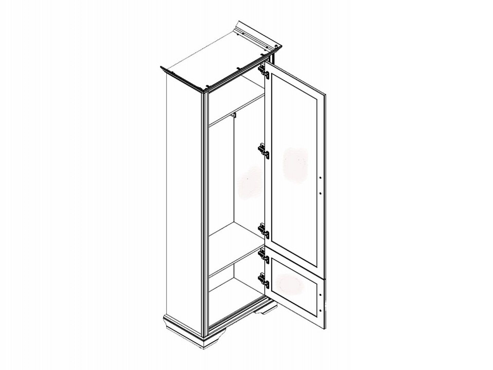 Компоненты, входящие в комплект: 1 выдвижная штанга для вешалок, 2 дверца, 2 полки