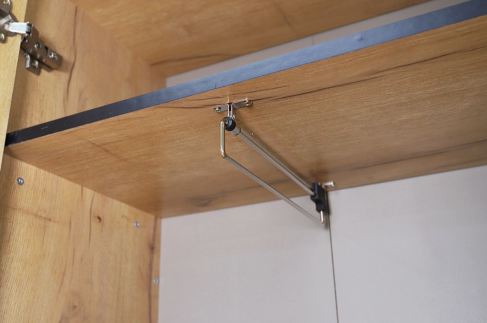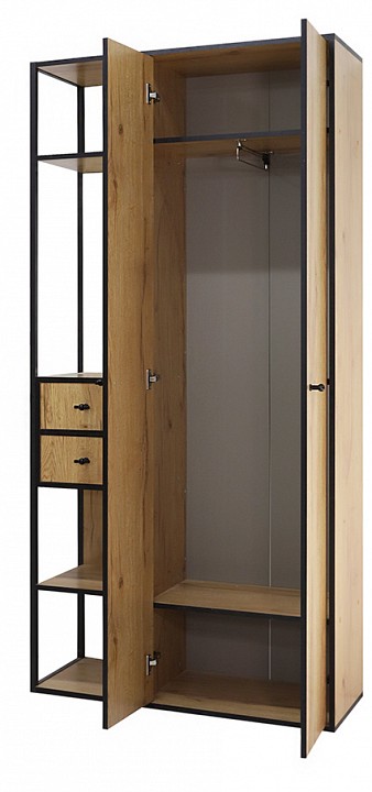 Компоненты, входящие в комплект: 1 выдвижная штанга для вешалок, 2 дверцы, 2 ящика, 4 полки