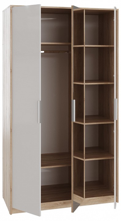 Компоненты, входящие в комплект: 1 штанга для вешалок, 3 дверцы, 6 полок