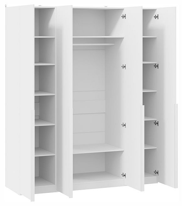 Компоненты, входящие в комплект: 1 штанга для вешалок, 4 дверцы, 12 полок