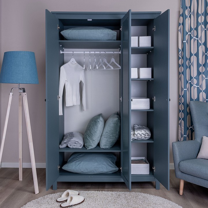 Компоненты, входящие в комплект: 1 штанга для вешалок, 3 дверцы, 6 полок
