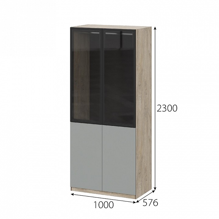 Компоненты, входящие в комплект: 1 шкаф — 1000х554х2300 мм, 4 дверцы, 2 штанги для вешалок